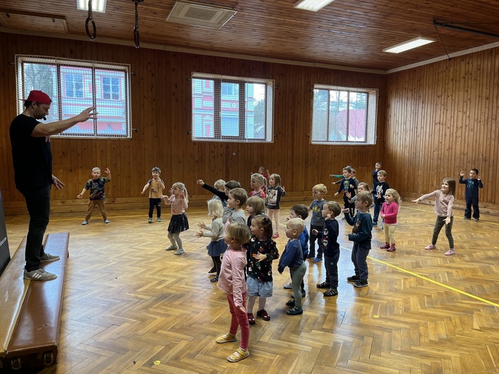 V pondělí 11. 12. jsme si užili krásnou taneční show v místní sokolovně s Doctorem Dancerem – panem Jaroslavem Havelkou. Všichni se na chvíli stali tanečníky. Zábavnou formou si zkusili různé taneční sestavy podle známých skladeb – Baby shark, Chňapík, Kačeří příběhy a podobně. Všem dětem patří velká pochvala a „Doctorovi“ obdivné „děkujeme“!