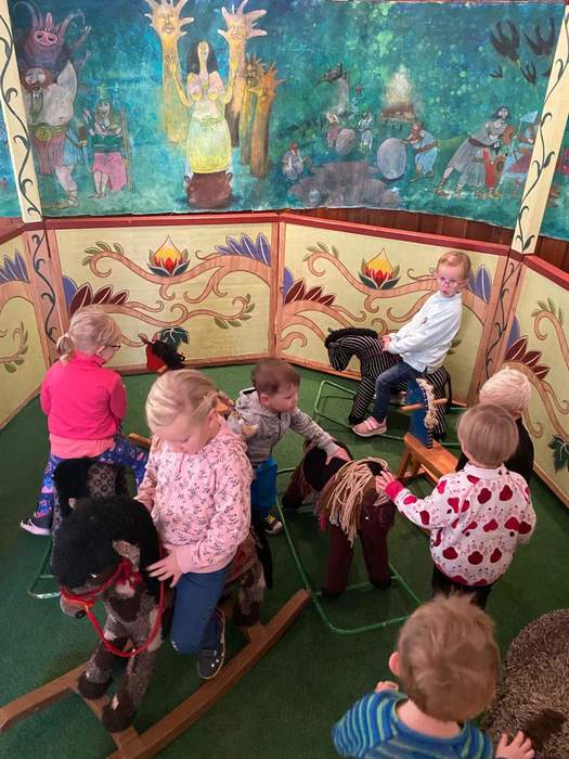 Ráno jsme se s dětmi sešli na nádraží a vyrazili jsme vlakem do Kostelce nad Orlicí do zámeckého imaginária. Tuto netradiční výstavu pořádá Zámek Kinských v Kostelci nad Orlicí. Výstavu připravila skupina výtvarníků - přátel Divadla bratří Formanů. Celá tato výstava je velmi hravá a to své si v ní dokáže najít úplně každý. Děti mohly obdivovat výstavu koňských hlav v maštali, krásné moře i se zvuky vln a racků, mohly se podívat do hýbajících se kaleidoskopů, hrát si s dřevěnými hračkami a kostkami, projít si bludiště, obdivovat různé noční můry, projít opičí prales, hrát si s plyšovými hady, pomoci pavoučkovi udělat pavučinu nebo shodit dračí hlavy pomocí míčků. Výstava byla velmi obsáhlá a spoustu věcí si děti mohly vyzkoušet. Všichni jsme si tento výlet velmi užili!