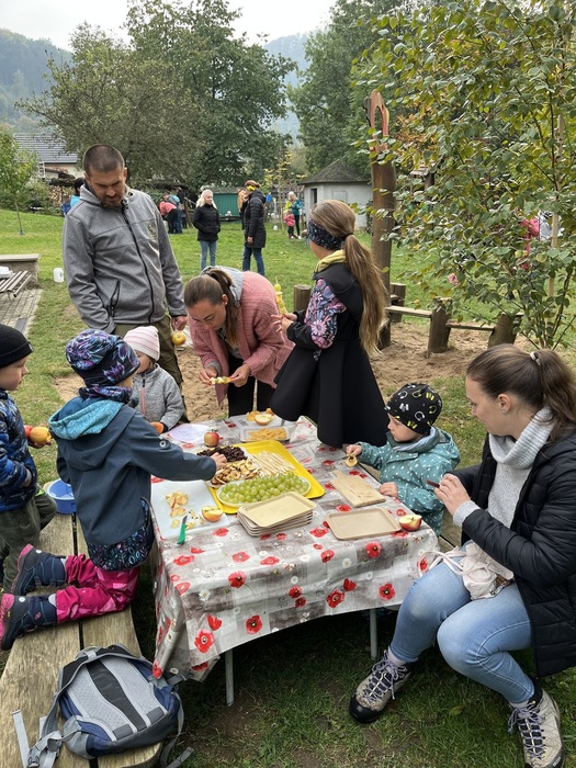 Je podzim, dozrává zelenina i ovoce. A tak jsme si 19.10. udělali hezké ovocné odpoledne společně s dětmi a rodiči – hráli jsme si s jablíčky na naší školní zahradě. Paní učitelky připravily devět stanovišť. Děti si vyzkoušely svou zdatnost na žebříku, pokud si chtěly vzít z košíku – zavěšeném na větvi – malého červíka (obrázek s magnetem). Lovily jablíčka z lavoru. Skládaly hlavolamy, poznávaly čísla, počítaly puntíky. Házely jablíčka do koše – nebojte se, nebyla opravdová, jen z látky. Zdolávaly překážky a podobné nástrahy. Společně s rodiči mohly krájet ovoce a vyrobit si ovocný špíz...mňam, to byla dobrota! Nechybělo ani tvoření z přírodnin a modelíny – to máme najednou ve školce ježečků. Děti si pohrály, rodiče se na chvíli mohli zastavit a pobejt. Věřím, že si každý našel to své, hezké, hravé…strávené na čerstvém podzimním vzduchu.