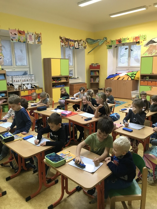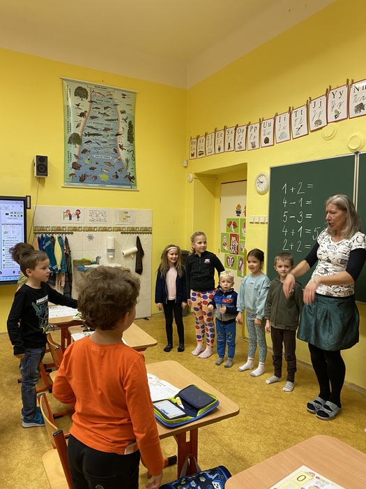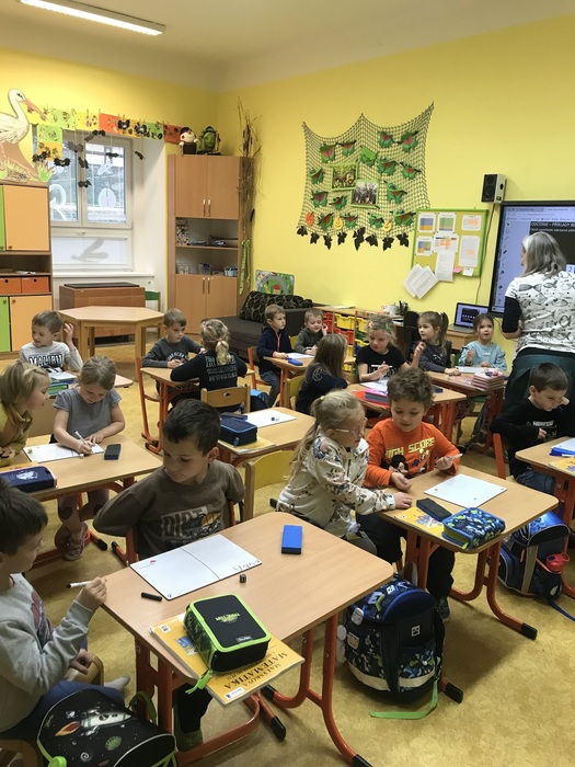 Děti se na své starší kamarády těšily a předem se chystaly na to, že si s nimi vyzkouší v hodině matematiky nějaké úkoly. Společně hráli například souboj kostek, zpívali písničku s ukazováním počtu na prstech a počítali výsledky zábavných slovních úloh. Zatímco prvňáci v části hodiny samostatně pracovali, předškoláci si vyzkoušeli práci v pracovním sešitě na interaktivní tabuli.