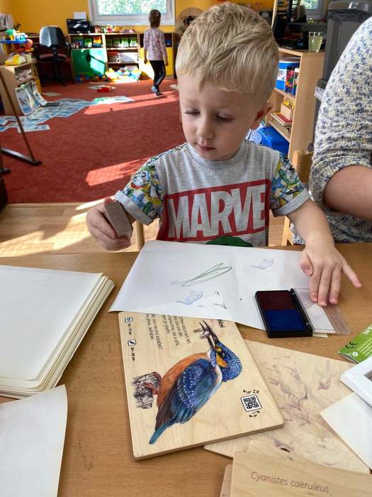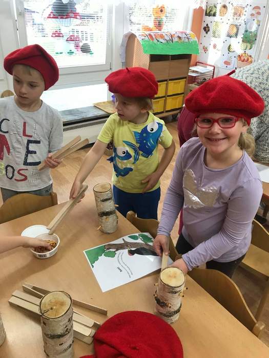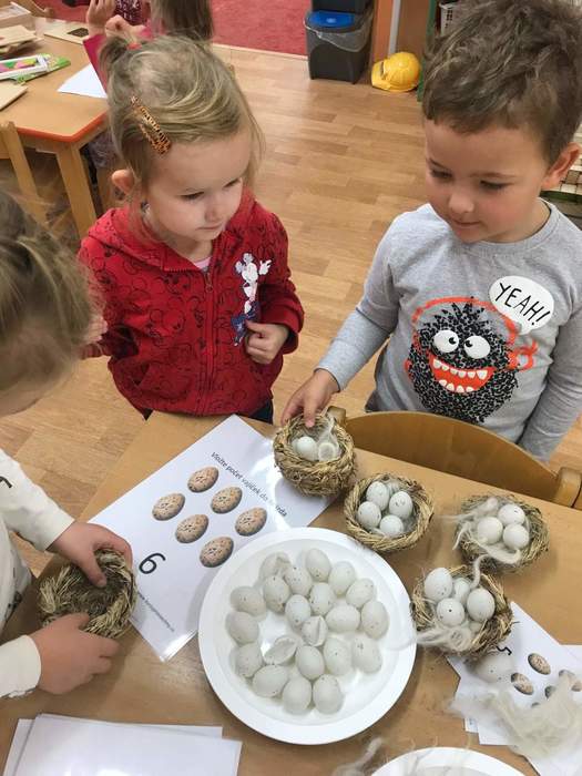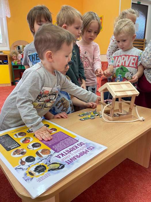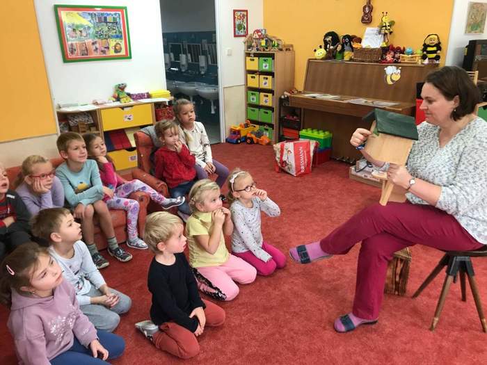 Znovu jsme u nás ve školce přivítali paní Adamcovou s jejím krásně připraveným programem tentokrát na téma ptáčci. Děti se nejprve o ptáčcích něco dozvěděly a poznávaly je na obrázcích. Poté si společně řekli, co všechno patří a nepatří do krmítka, létaly s vlaštovkami na dráty elektrického vedení, kam je připínaly kolíčky, prohlížely si knížky, kde mohly poznávat ptáčky i podle zvuků nebo dávaly pomocí suchého zipu ptáčky na stromy. U stolečků si potom zahrály na datlíky, kde vytahovaly červíky ze špalků, počítaly, kolik vajíček se má dát do hnízda, nebo si mohly vybrat ptáčky, které si obkreslí a natisknou razítky. Všechny děti si tento program velmi užily a už se těšíme na další!