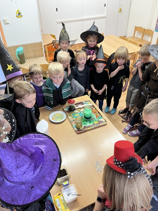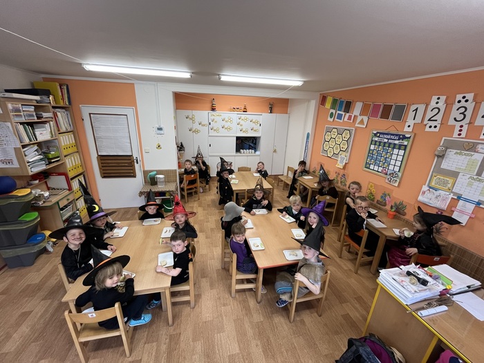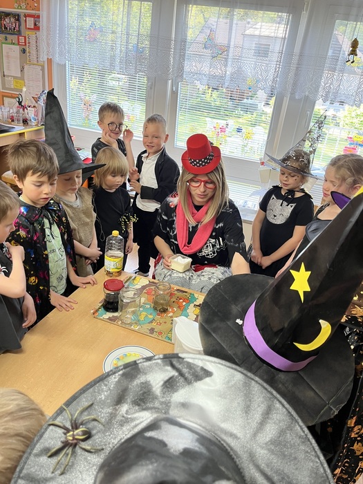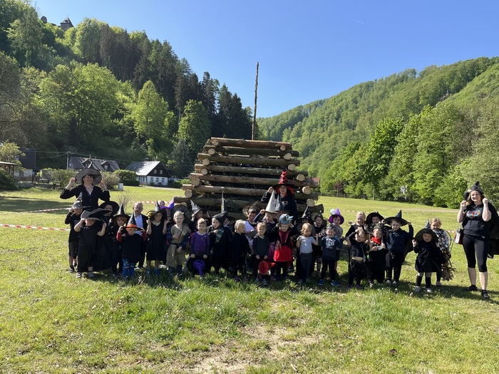 30. 4. přišlo k nám do školky, místo dětí, spousta čarodějnic a čarodějů. Ve třídě Berušek si každý nakreslil a „oblékl“ svoji čarodějnici. Potom jsme společně vyčarovali bublavý lektvar, tančili, začarovávali se na různá zvířátka a fotili se. Také jsme ochutnali dobrotu, kterou pro děti vykouzlil Matoušek. Ve třídě Včeliček děti nejdříve plnily čarodějnické úkoly, vařily lektvary podle zadaných ingrediencí, procházely pavučinou a namalovaly si čarodějnici. Nakonec vyzkoušely několik tajemných pokusů. V rámci vycházky jsme si všichni společně udělali promenádu v maskách po Potštejně a obhlédli si na Bělisku hranici nachystanou na večer. Úplně nakonec nás ještě na zahradě čekala stezka s čarodějnými úkoly.