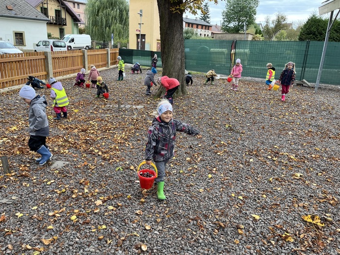 Jako každý rok na podzim, tak i letos jsme se s dětmi vydali sbírat kaštany. Všechny nasbírané kaštany jsme předali panu myslivci pro zvířátka.