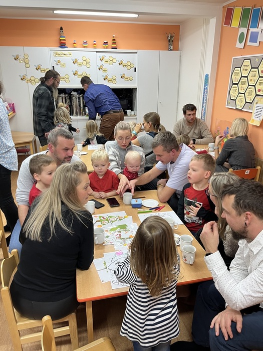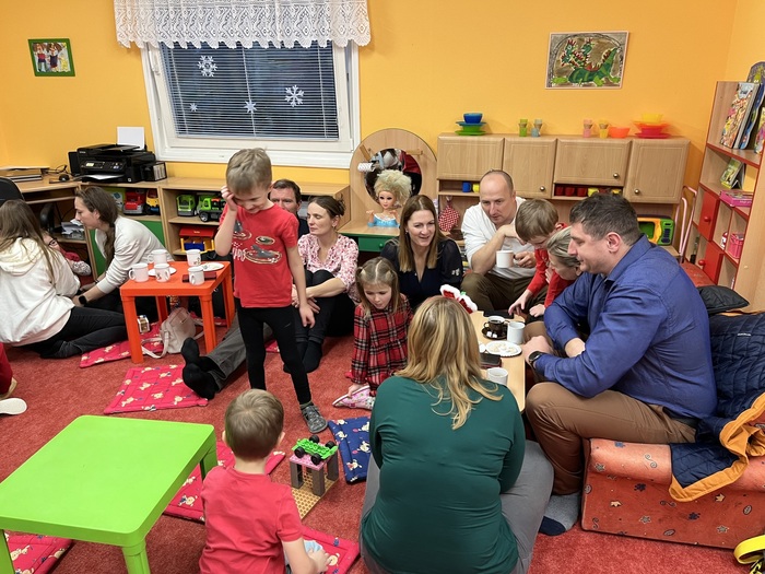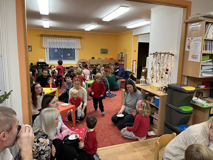 V úterý 12. 12. odpoledne jsme se sešli ve třídě Včeliček s dětmi a jejich rodiči u příležitosti „Vánoční kavárničky“. Na začátek zazpívaly děti u ozdobeného stromečku několik vánočních písniček a zarecitovaly básničky. Poté už nedočkavě roznášely rodičům cukroví, které společně ve školce pomáhaly péct, a nechyběla ani káva a teplý mošt. Rodiče si s dětmi mohli pohrát s připravenými stromečky a baňkami z papíru, které zdobili podle vlastní fantazie. Pro děti byly připravené vánoční omalovánky a také spousta hraček. Posezení i v našich menších prostorách proběhlo v klidu a pohodě. Všichni odcházeli spokojení a naladění vánoční atmosférou.