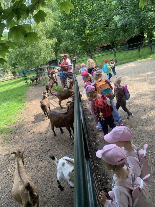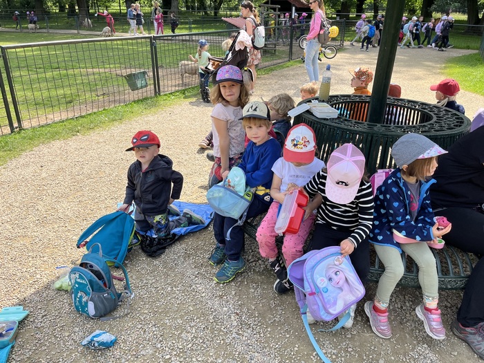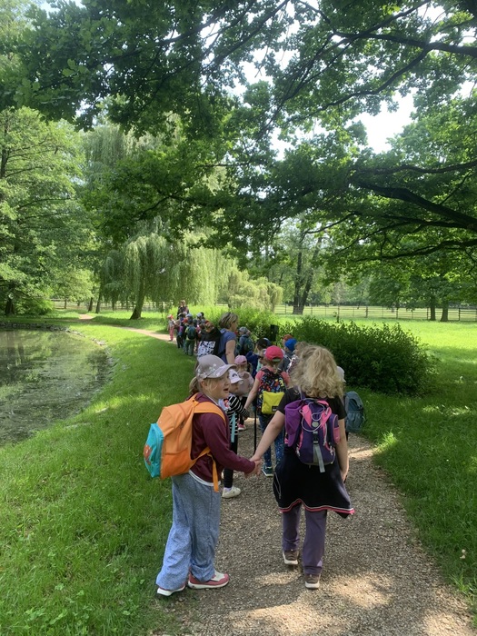 V červnu nás čekal celodenní výlet do Častolovic, který byl pro děti opět velkým dobrodružstvím. Dojeli jsme vlakem do Kostelce nad Orlicí, kde jsme po snězení svačin pokračovali přírodou až k zámku v Častolovicích. Naším cílem byl zámecký park, zvířata v oboře a především jejich minizoo. Děti si zde mohly prohlédnout např. emu, lamy, poníky, oslíky, kozy, ovečky nebo pestrobarevné papoušky. Nejvíce je zaujaly lamy alpaky, které si s nadšením hladily. Nezapomněli jsme ani na prasátka, kterým jsme donesli kusy suchého pečiva.