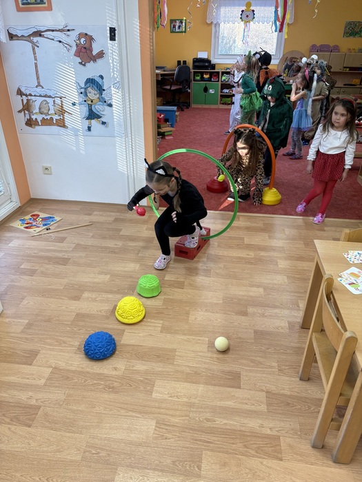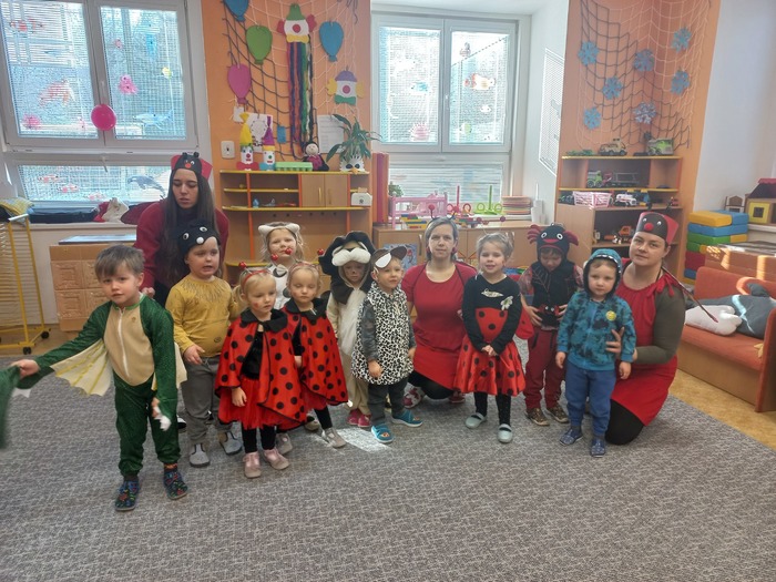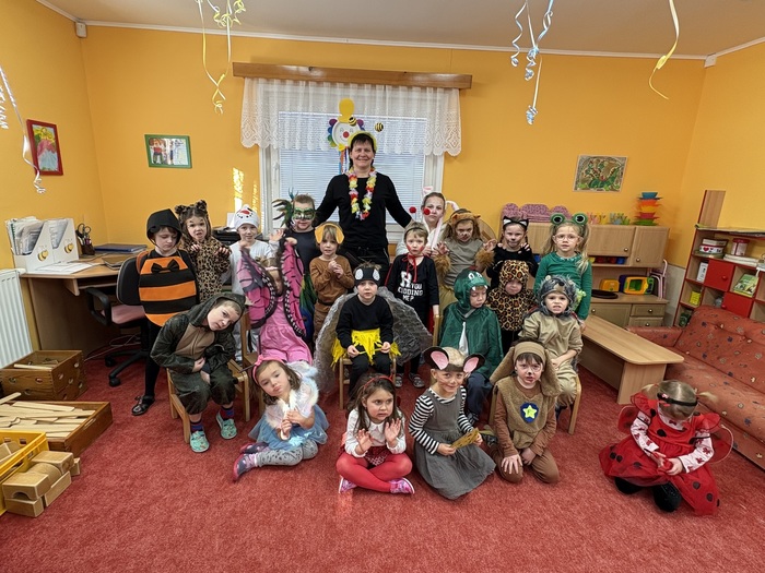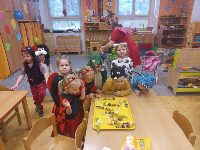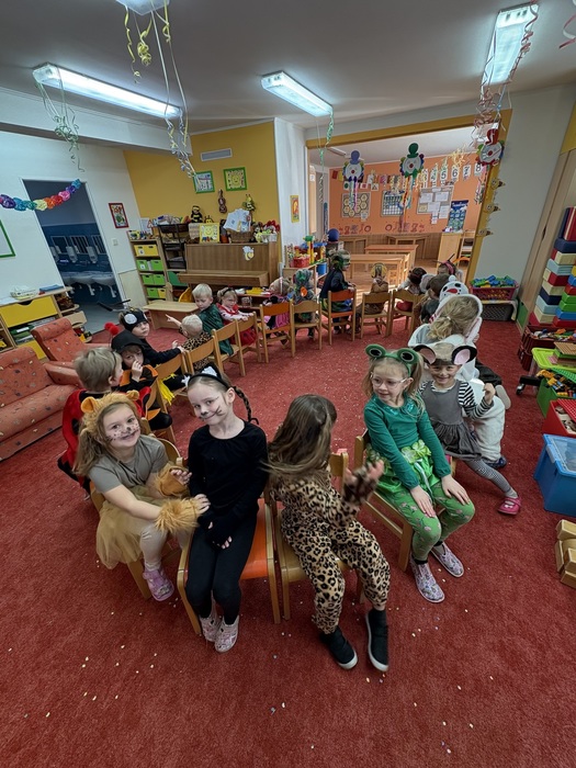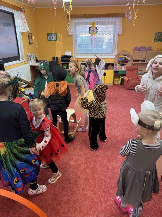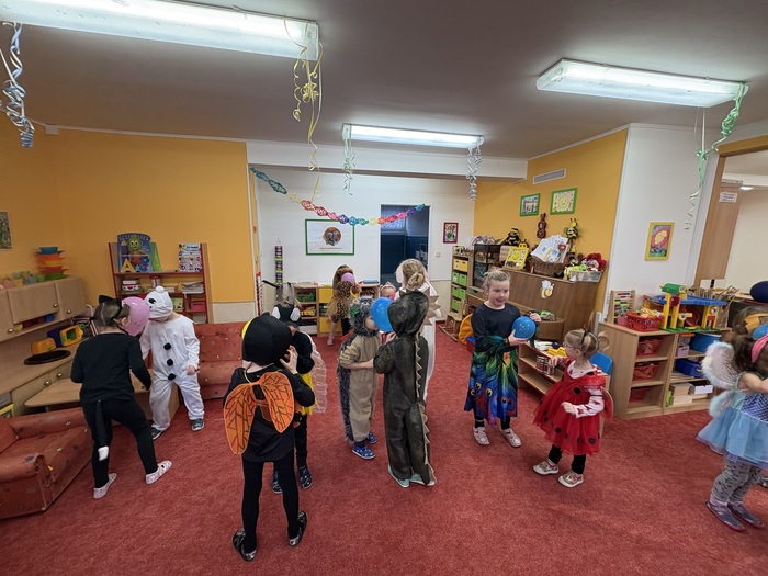 Karneval ve školce je vždy pro děti významnou událostí. Tentokrát byl na téma „zvířátka“ podle našeho celoročního tématu „ Po stopách zvířat“. Ráno si děti vytvořily ovocný špíz, zdolávaly překážkovou dráhu, plnily různé zábavné úkoly na stanovištích. Jako občerstvení jim posloužily vyrobené špízy a zbylé ovoce. Po svačině se tancovalo, byla přehlídka a focení masek. Nejvíc si děti užily tanec s nafukovacími balónky a hry jako "Židličkovaná". Třídy byly v tento den plné zvířátek a zábavy, moc jsme si karneval užili.