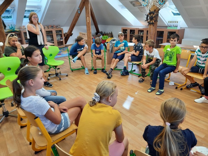 Ve dnech 5. – 6. 9. 2023 se ve 2. – 5. ročníku uskutečnily besedy na stmelení kolektivu pod vedením paní Mgr. Hany Zakouřilové, MBA. Žáci se snažili lépe poznat se svými vrstevníky formou zajímavých aktivit, učili se v různých situacích spolupracovat a zareagovat na daný problém nebo si vhodně nastavit pravidla komunikace v rámci celé školy.