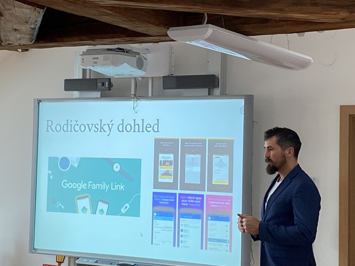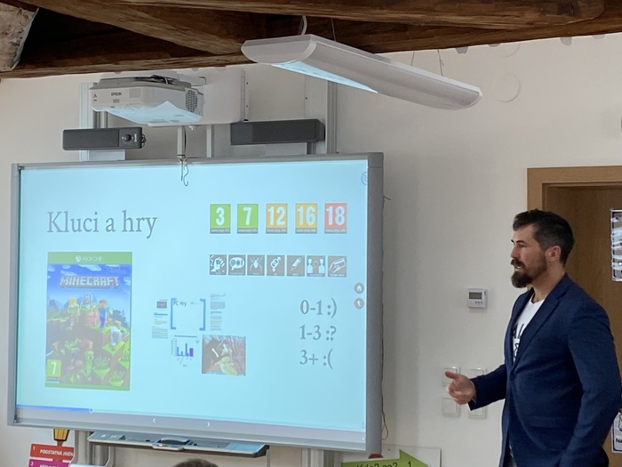 V úterý 16. dubna se ve škole uskutečnila beseda na téma "Vaše dítě a internet" pod vedením Ing. Petra Kadlece z firmy ACET, která se týkala bezpečného chování na internetu.