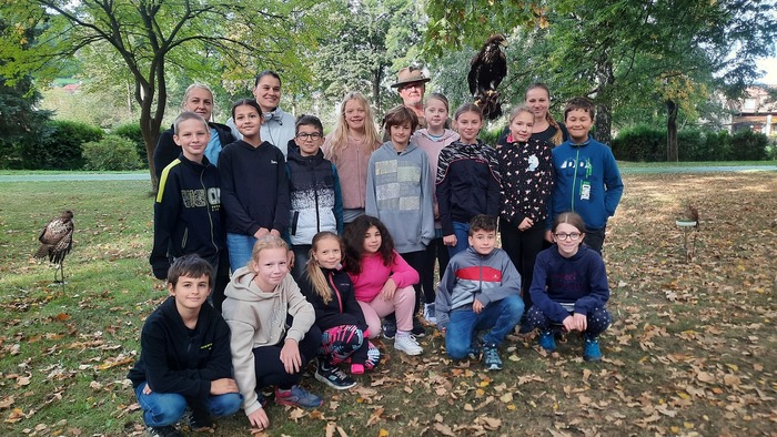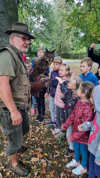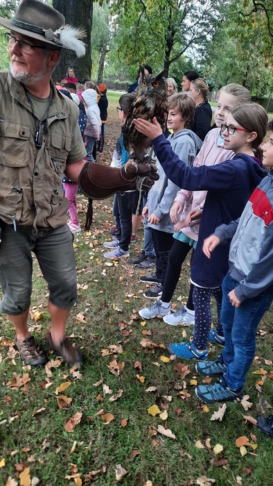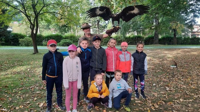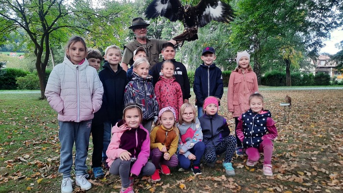 Dne 4. října naši školu navštívil sokolník, který nám představil nejzajímavější dravce a sovy. Dozvěděli jsme se spoustu zajímavých informací a mohli jsme zhlédnout i ukázky výcviku. Děti si některé z dravců mohly pohladit nebo si je zkusit usadit na ruce. Seznámili jsme se s představiteli sokolovitých i krahujcovitých ptáků, měli jsme možnost si zblízka prohlédnout majestátního orla skalního, ale i některé druhy ohrožených sov. Dopoledne s dravci se vydařilo a všichni opeřenci se nakonec vrátili zpět k sokolníkovi, přestože se mladé poštolce zpět do klece nechtělo a raději by ještě déle prozkoumávala potštejnský parčík.