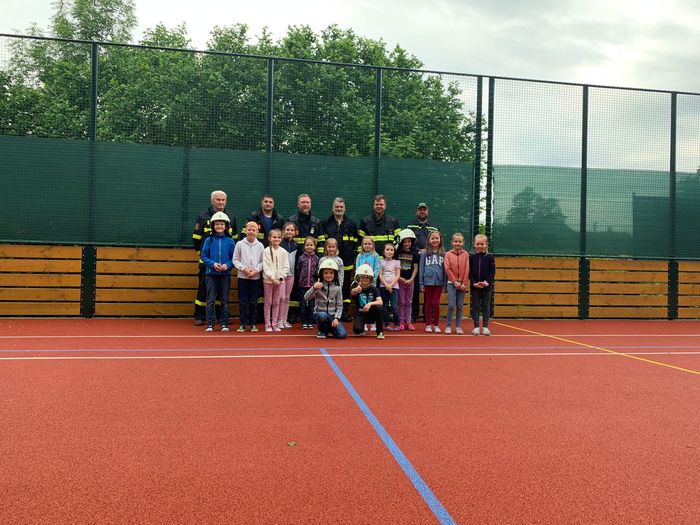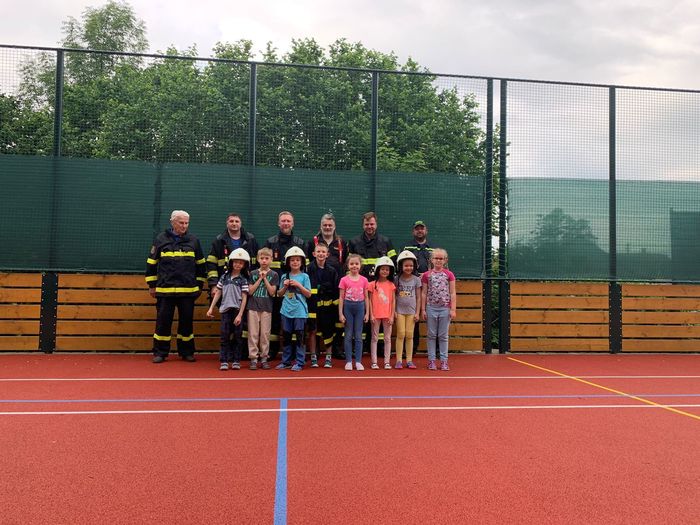 Nejmladší děti se z budovy evakuovaly oknem, ty starší musely projít zakouřenou chodbou v zástupu pod dozorem hasičů. Nakonec jsme se všichni sešli na hřišti před školou, kde jsme si ještě s hasiči popovídali a společně se vyfotografovali. Děkujeme potštejnským hasičům za zorganizování celé akce.