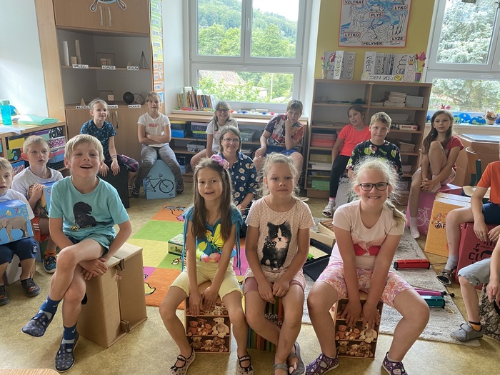 V pondělí 24. června se žáci 1. a 3. ročníku seznámili s paní hudebnicí, která jim představila hru na různé hudební nástroje. Nejprve rytmizovali na skládací kartonové bubny - kajony, poté hráli na hudební zvonky, vyťukávali melodii na xylofon a nakonec doprovázeli známé písničky na boomwhackers. Žáci si tak užili příjemné hudební dopoledne.