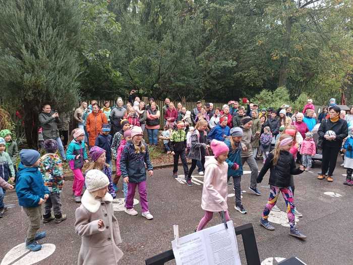 Žáci nacvičili tři písně s tématikou letošního školního roku "Po stopách zvířat". Písničky jsme doprovázeli pohybem, hudebními nástroji i vlastními obrázky. Své vystoupení zakončili žáci tancem na píseň Jedem do Afriky. Poté jsme pozvali všechny zúčastněné na prohlídku školy. Potěšilo nás, že přišli nejen bývalí zaměstnanci a žáci školy, ale také mnoho obyvatel Potštejna i přespolní návštěvníci. Každý si z naší školy mohl odnést nafukovací balónek s logem školy a linorytový pamětní lístek, který vytvořili loňští páťáci.