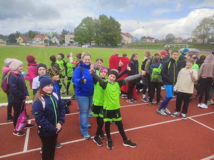 Ve čtvrtek 25. dubna jsme se vypravili na okresní kolo Olympijského víceboje. Na tuto výpravu vyrazilo 10 nejúspěšnějších sportovců, kteří během roku nasbírali nejvíce bodů v olympijském víceboji ve své kategorii. Zápolení se uskutečnilo v Rychnově nad Kněžnou. Soutěžící se utkali celkem ve čtyřech disciplínách - skok přes švihadlo, sedy - lehy, hod medicinbalem a trojskok z místa. Podařilo se nám získat několik medailí: Matyáš Trnka - 1. místo, Aneta Novotná - 1. místo, Tobias Hnat - 2. místo a Kristýna Cimflová - 3. místo. Žáci z 1. a 2. místa postupují do krajského finále. Moc blahopřejeme a přejeme mnoho úspěchů v Hradci Králové.