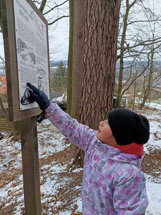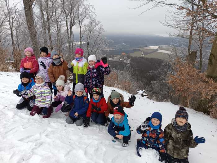 Dokonce jsme se vypravili jako správní turisté přímo do přírody - zdolali jsme nejvyšší vrchol v našem okolí a pozorovali zimní přírodu v naší podhorské oblasti.