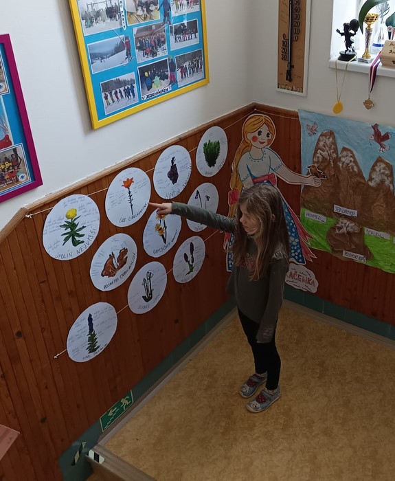 Vyhledávali jsme významné vrcholy na mapě, seřadili je podle výšky i podle abecedy. Četli jsme si z knihy Josefa Lukáška "Pohádky z Orlických hor", která se o naše hory poctivě stará. Na internetu jsme zjišťovali informace o významných rostlinách a živočiších z chráněné krajinné oblasti, která byla založena roku 1969 právě na ochranu krásné horské přírody. O horách jsme si také zazpívali a pro děti, které byly na Zimním pobytu na horách, připravili i hádanky a úkoly k tomuto tématu.