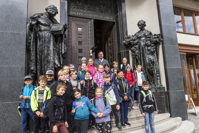 Po návratu z podzemí jsme si prohlédli secesní budovu s názvem GMU – Galerie moderního umění. Zde jsme si prošli všechny tři patra, pokoušeli se vyjádřit své názory k jednotlivým výtvarným dílům. Odměnou pozorného prohlížení byla vyhlídka ze střechy budovy.