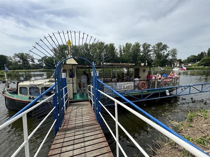 Nalodili jsme se na loď Blanici a pluli po proudu Labe asi hodinu do města Nymburk. Kromě krásných výhledů z lodi bylo největším zážitkem zdymadlo, několik stovek metrů před koncem plavby. Hladina vody s námi klesla skoro o 2 metry a to už jsme se začali připravovat na výstup. Nymburk nás zaujal svými hradbami hned nad řekou. Dokonce jsme se po nich i kousek prošli.