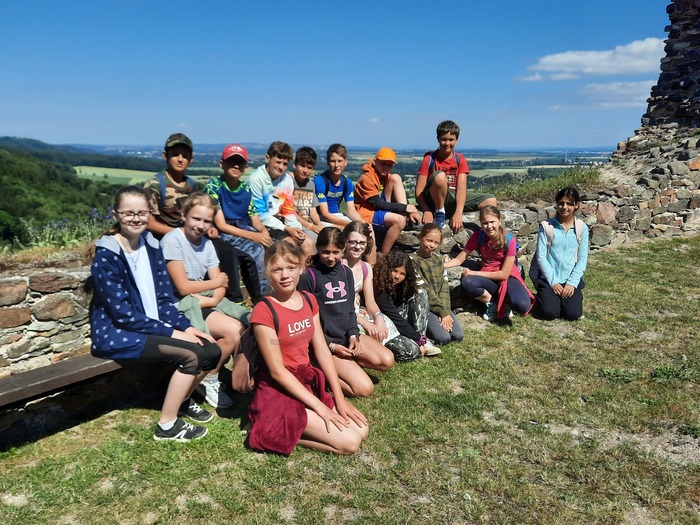 V pondělí 24.6.2024 v 18:00 proběhlo na Hradě rozloučení s páťáky. Všichni pozvaní si nejprve musela vyluštit malý kvíz s tajenkou. V tajence bylo obsaženo heslo: „Rozloučení s páťáky“. Všichni se usadili na připravené lavice a byli přivítáni paní ředitelkou. Následovalo divadelní představení – muzikál Ať žijí duchové. Toto vystoupení se páťákům moc povedlo a sklidili velký potlesk. Poté slavnostně nastoupili před zúčastněné, byly jim předány drobné dárky a bylo řečeno pár slov o každém z nich. Nakonec promluvil i pan starosta. Návštěvníkům bylo nabídnuto drobné občerstvení a kolem půl osmé se pomalu rozcházeli domů. Pro páťáky to ale nekončilo. Postavili si svoje stany a od osmi hodin byl připraven program s malováním triček. Potom již následovala volnější zábava. Přespali jsme ve vlastních stanech. Ráno jsme pobalili, posnídali a vyčkali na paní průvodkyni, která nás provedla po Hradě.