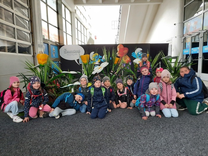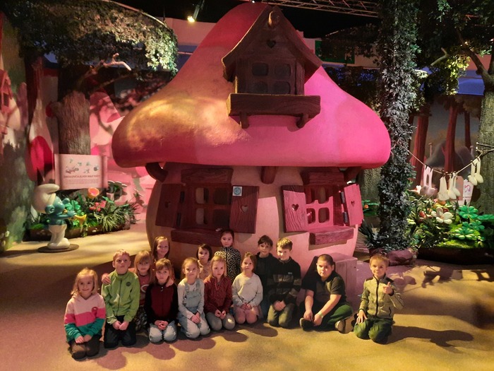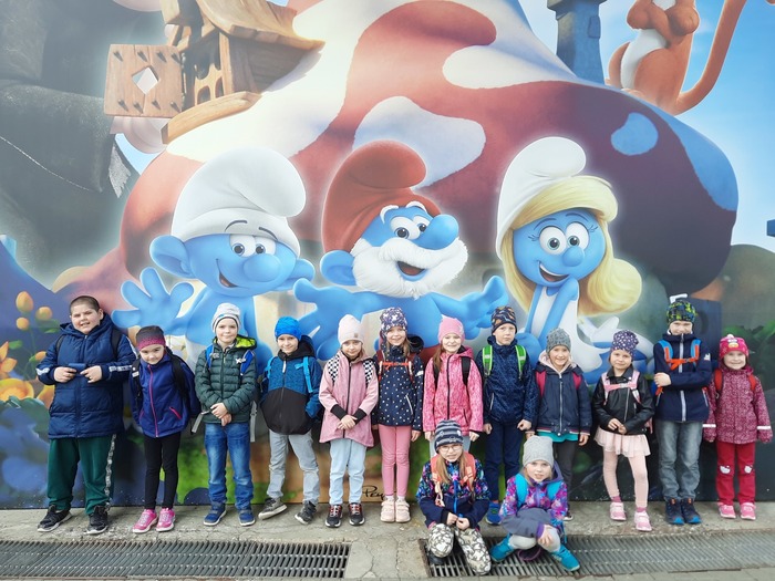 Žáci 1. ročníku a MŠ navštívili 19.4. zábavně vzdělávací park Šmoulové - Magický svět. Tento program přináší šmoulí svět v nadživotní velikosti.