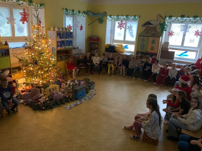 Pátek 20. prosince jsme s dětmi prožili nejprve ve svých třídách a poté pokračovali společnou vánoční besídkou celé školy. Zazpívali jsme si koledy a páťáci rozdali dárky. Nejdříve to byly dárky pro celou školu – nové knížky, pomůcky do výuky apod. Pak si děti rozbalily dárečky od svých kamarádů a plyšové zvířátko od školy. Zbytek dne strávily děti ve třídách. Měly možnost vybrat si z nabízeného programu: programování Bee Botů, deskové hry, hry s legem, s vláčky, anebo zhlédnutí vánočního filmu. Na závěr jsme si popřáli pěkné Vánoce a rozešli se domů.